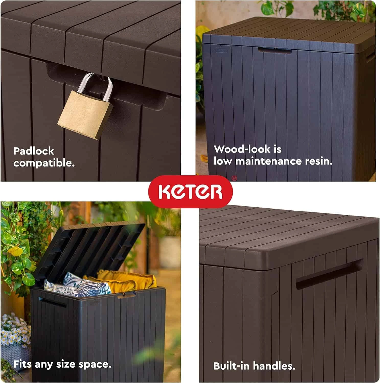 - RESIN CONSTRUCTION: It’s made out of all weather-resistant resin with an appealing wood-look texture