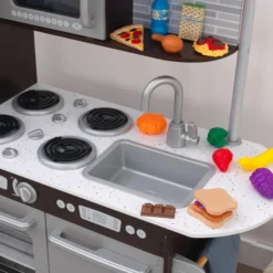 KidKraft Uptown Espresso Wooden Play Kitchen and 30-Piece Play Food Accessories