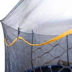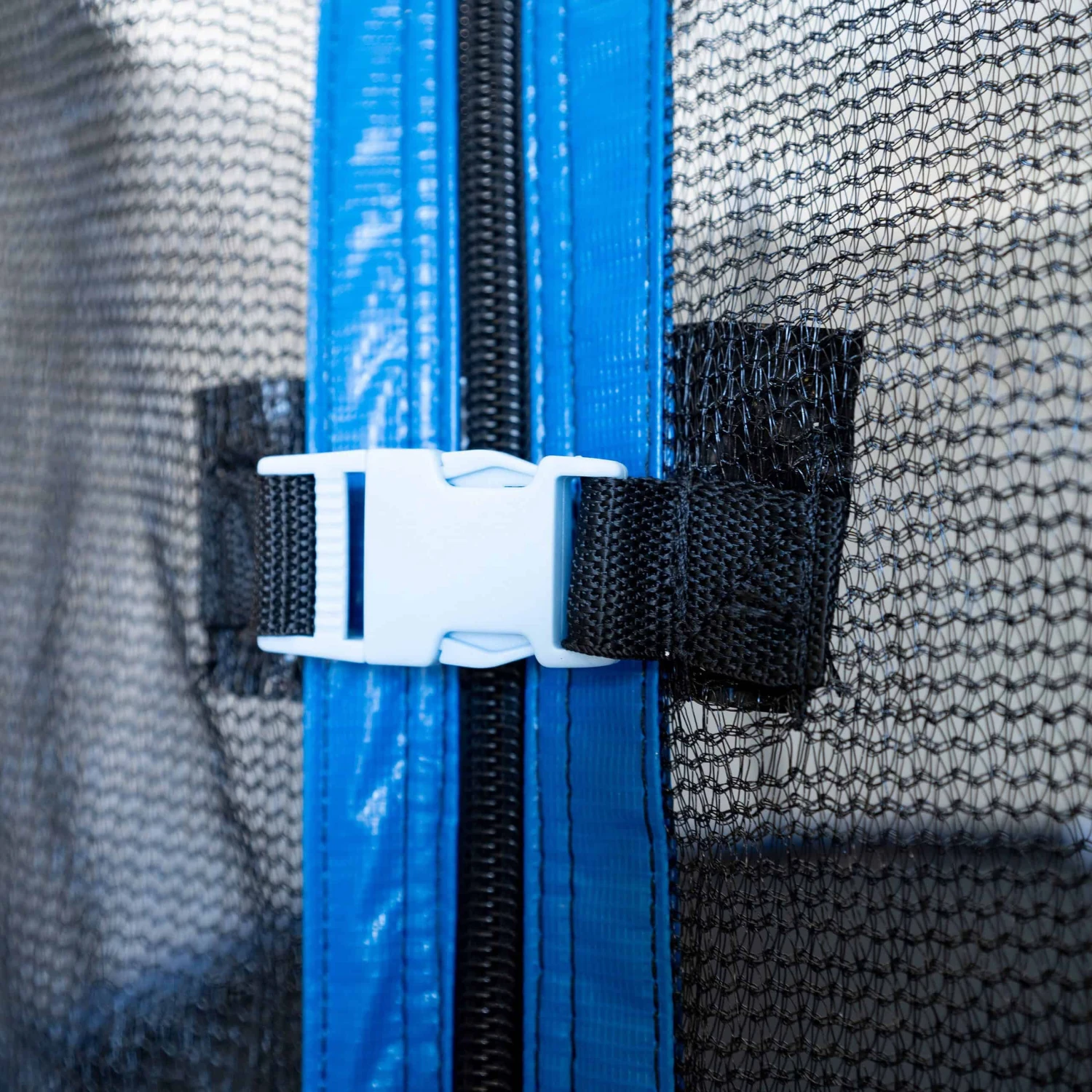 - EXTRA PROTECTION: This trampoline has a dual netted enclosure and for extra safety, it also includes an underside bottom netting to prevent kids and pets from crawling under the trampoline