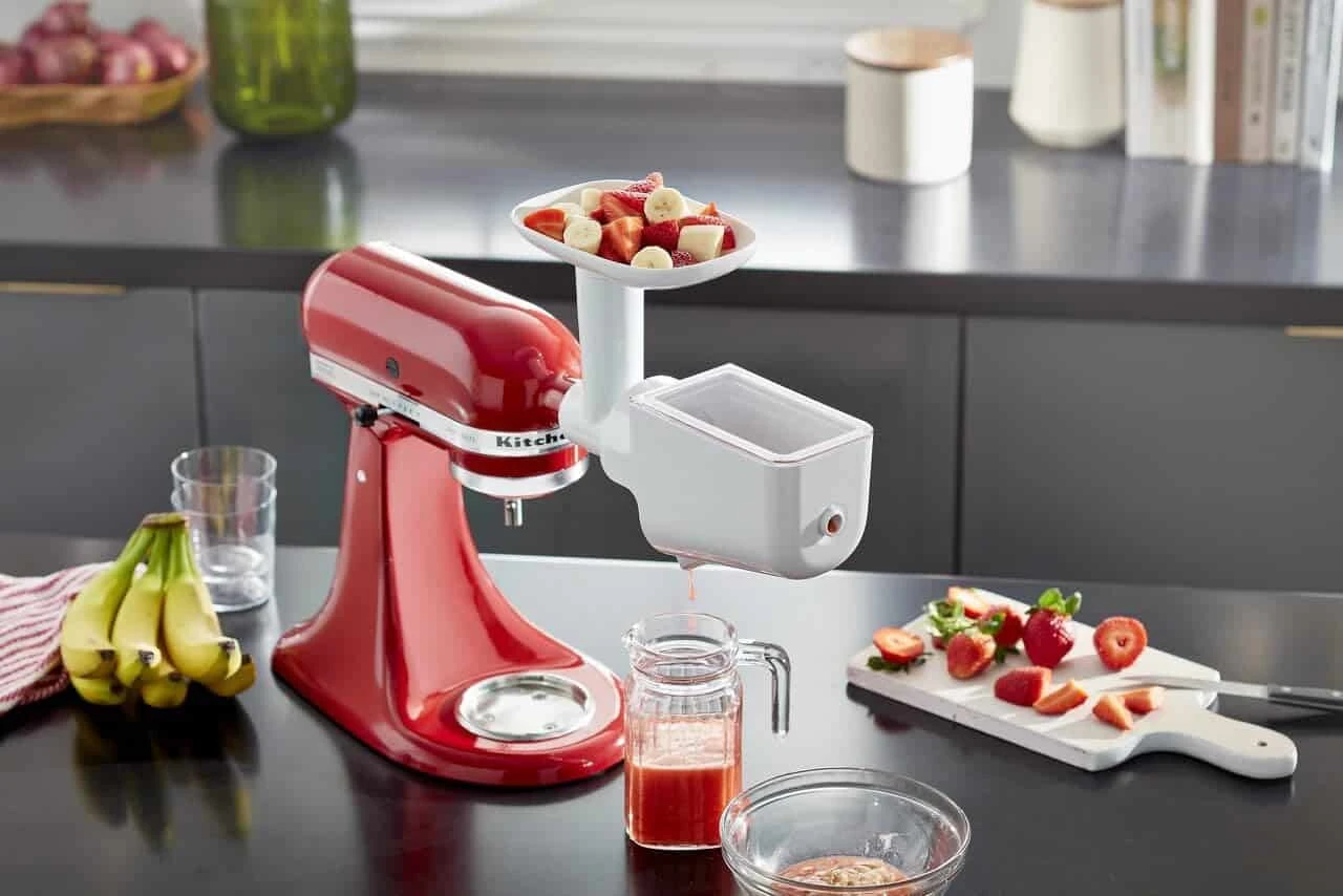 - Specially designed to work with the KitchenAid Food Grinder* to help you puree and strain fruits and vegetables for jams, sauces, baby food and more.*Requires Food Grinder model KSMFGA, sold separately. Not compatible with discontinued FGA Food Grinder.