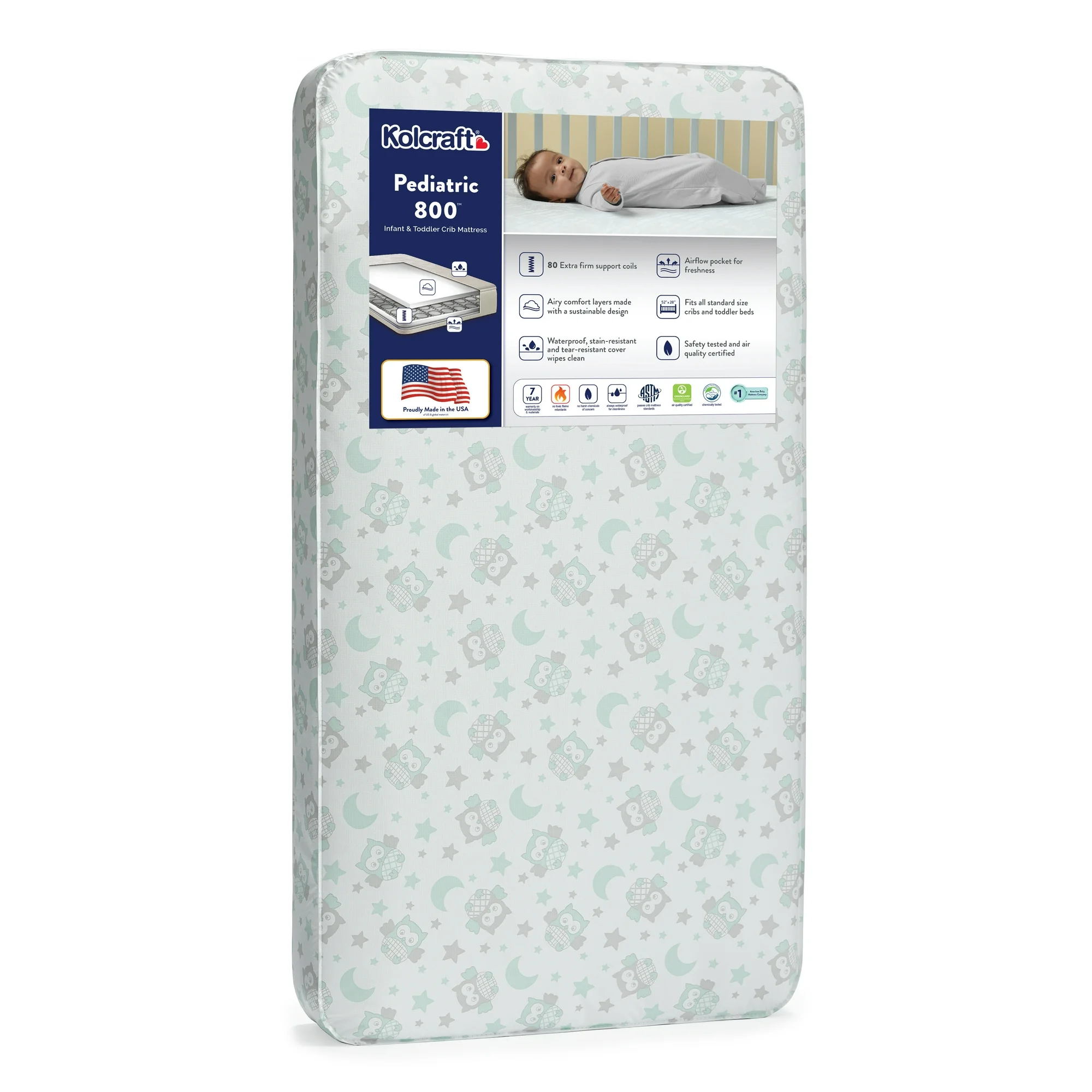 Kolcraft Pediatric 800 Extra Firm Baby Crib & Toddler Mattress, 80 Coil, Waterproof, Mint/Grey