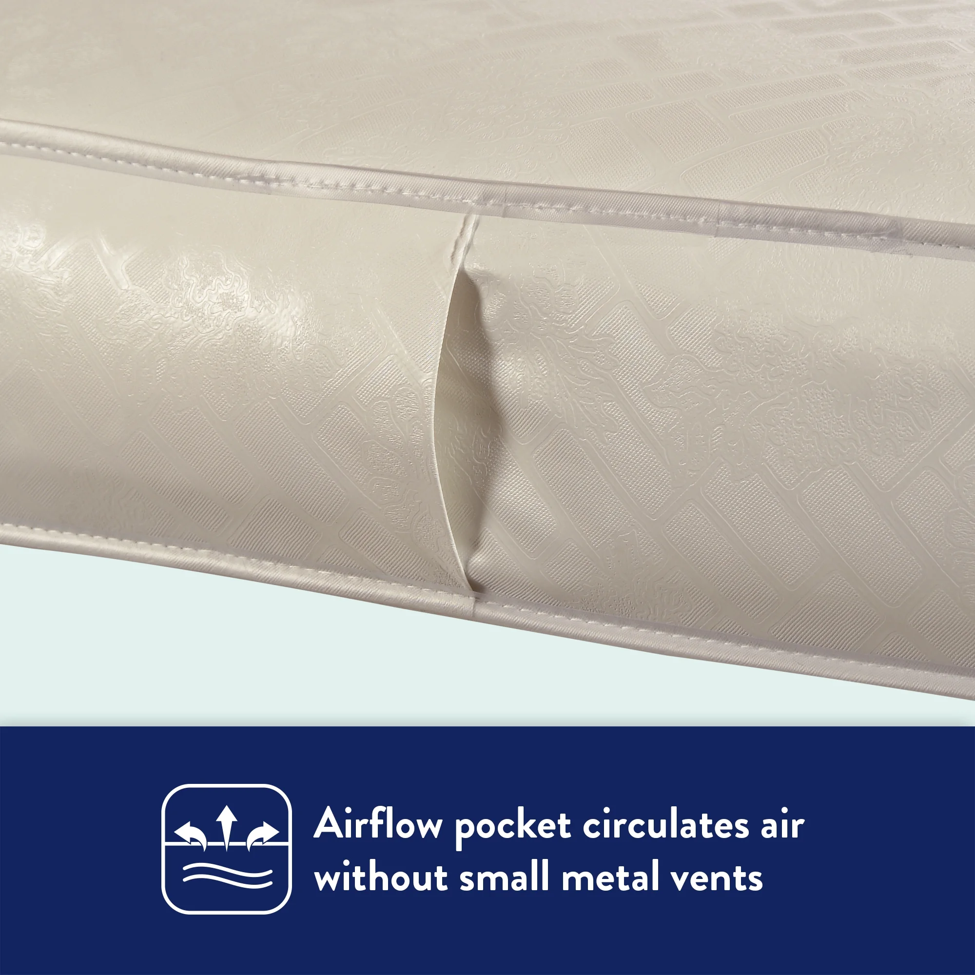 - Airflow pocket helps baby mattress to breathe without metal vents, an original Kolcraft design