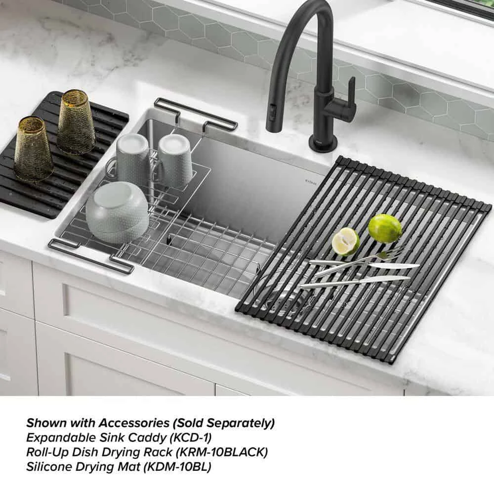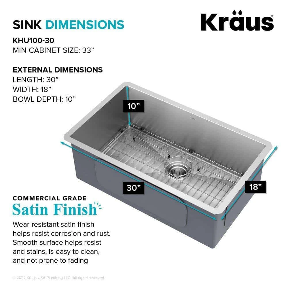 KRAUS kitchen sinks are known for excellent quality and sturdy construction. The Premier Collection sinks are the perfect combination of quality, durability and convenience. Made from durable T-304 stainless steel, this undermount sink can easily stand up to constant use and handle your toughest kitchen tasks. Enjoy the advantage of high-end kitchen sinks with the best-selling Standard PRO Series. This KRAUS sink features a clean contemporary design and wear-resistant finish with a beautiful sheen that complements most kitchen appliances.