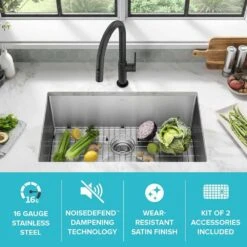 - ULTRA-QUIET SINK: NoiseDefend sound dampening technology with large super-silencer pads on all sides of the sink helps prevent noise and vibration from dishes and garbage disposals