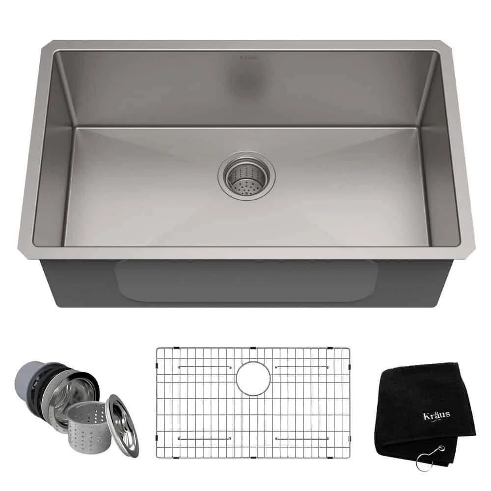 KRAUS KHU100-30 Standart PRO 30 in. Undermount Single Bowl 16 Gauge Stainless Steel Kitchen Sink with Accessories