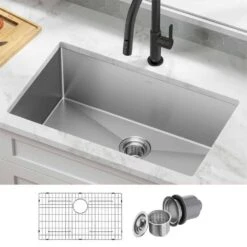 | Features | Corrosion Resistant, Heat Resistant, Insulated, Sound Dampening, Tight/Zero Radius | Included | Bottom Grids, Mounting Hardware, Strainer Basket |