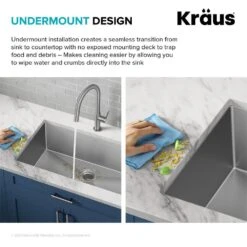 - UNDERMOUNT INSTALLATION creates a seamless transition from sink to countertop with no exposed mounting deck to trap debris – Makes cleaning easier by allowing you to wipe water and crumbs right into the sink