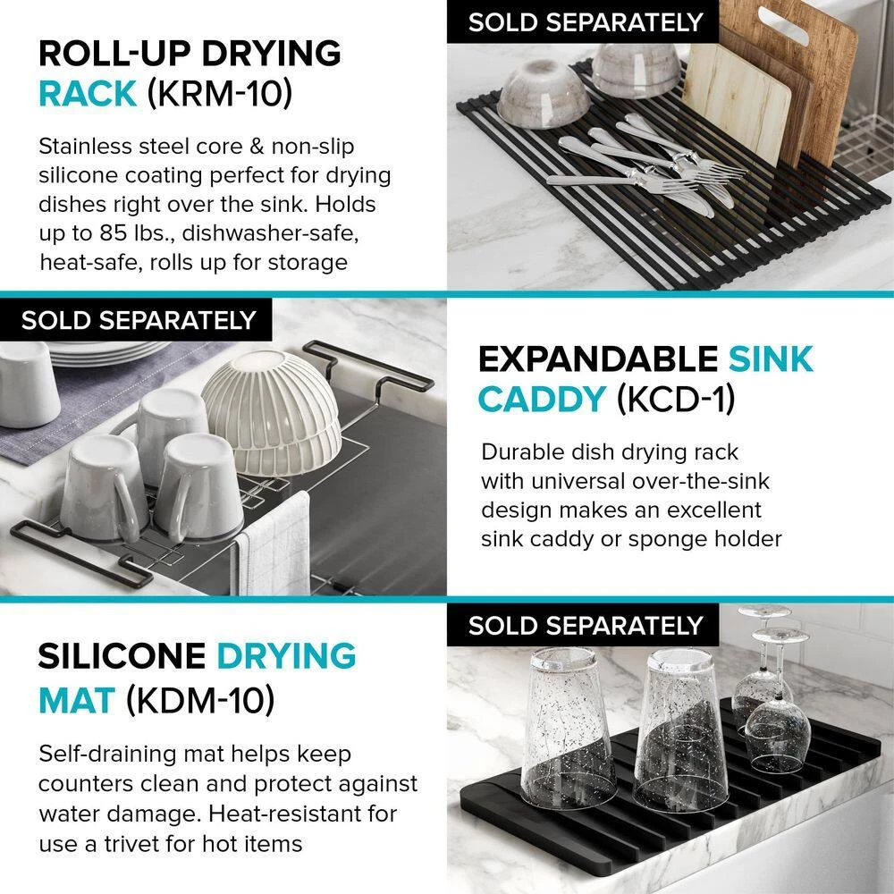 - RECOMMENDED ACCESSORIES (sold separately): Enhance the functionality of your sink with a selection of kitchen sink accessories like the Garbage Disposal (KWD100-75MBL), Roll-Up Dish Drying Rack (KRM-10BL), and Expandable Kitchen Sink Caddy (KCD-1)
