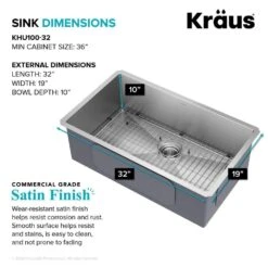 KRAUS Standart PRO 32in. 16 Gauge Undermount Single Bowl Stainless Steel Kitchen Sink