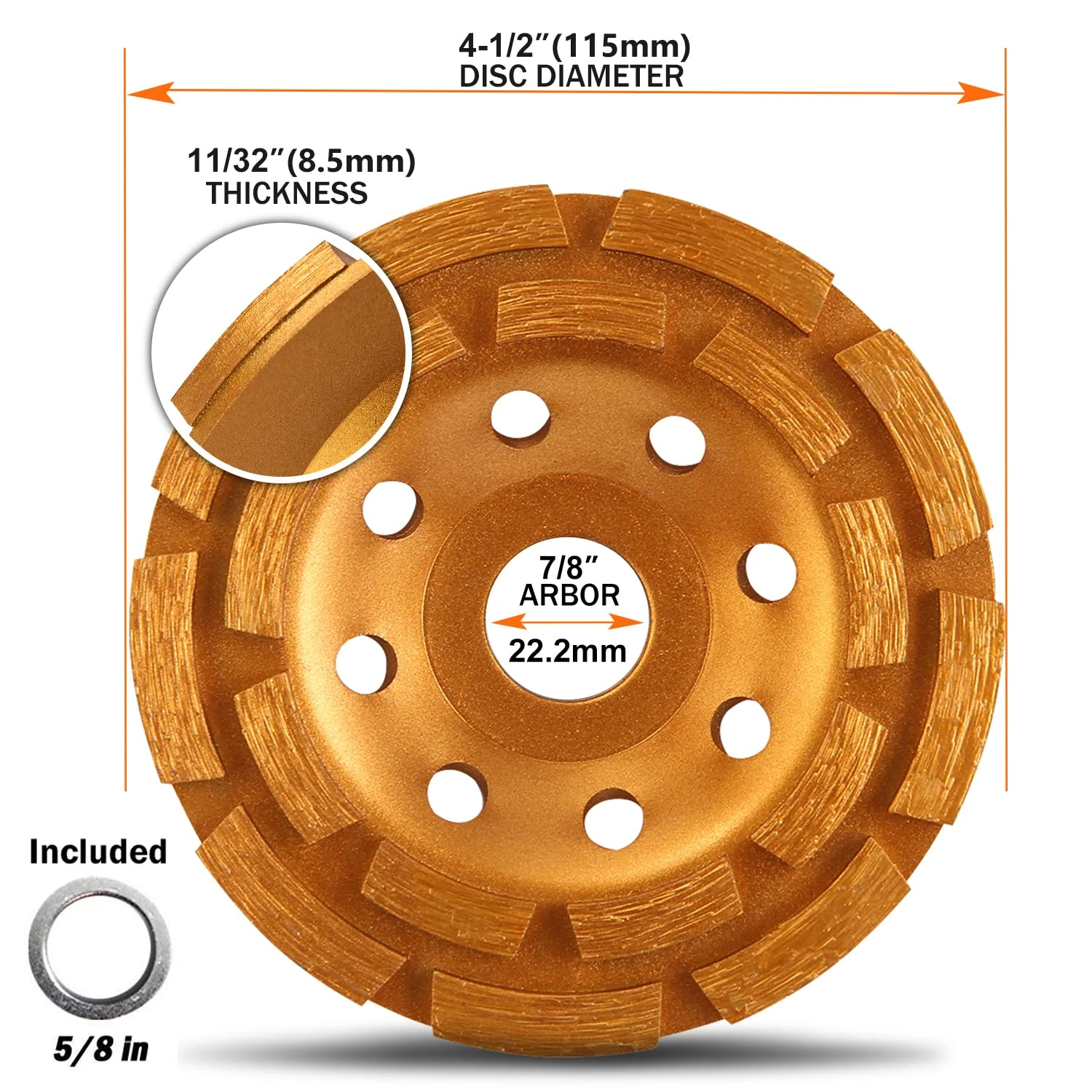 KSEIBI 644030 Double Row Diamond Cup Wheel for Concrete Grinding 4-1/2 Inch