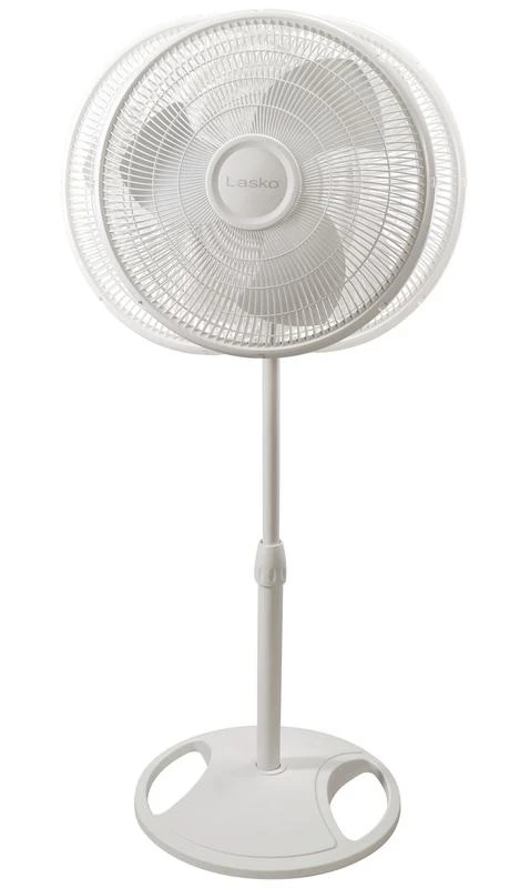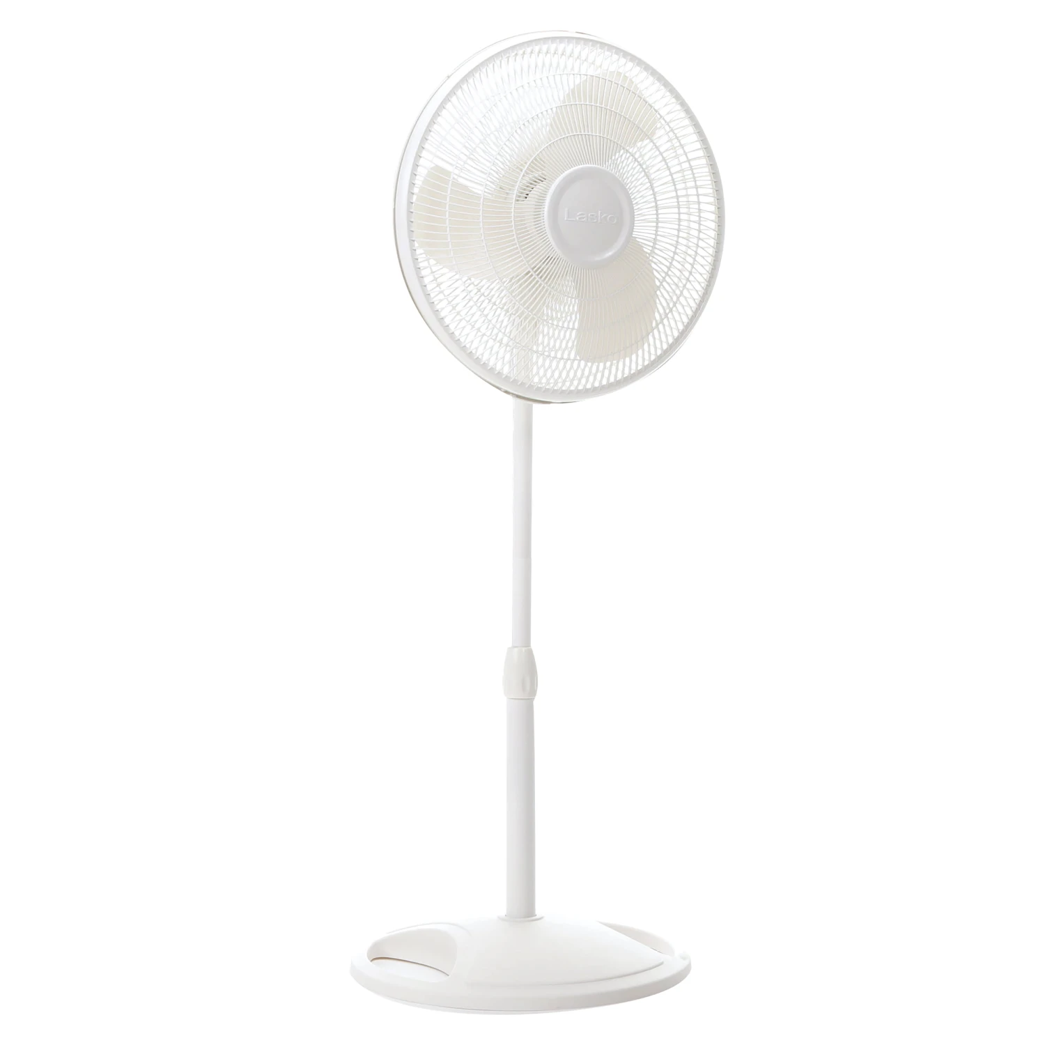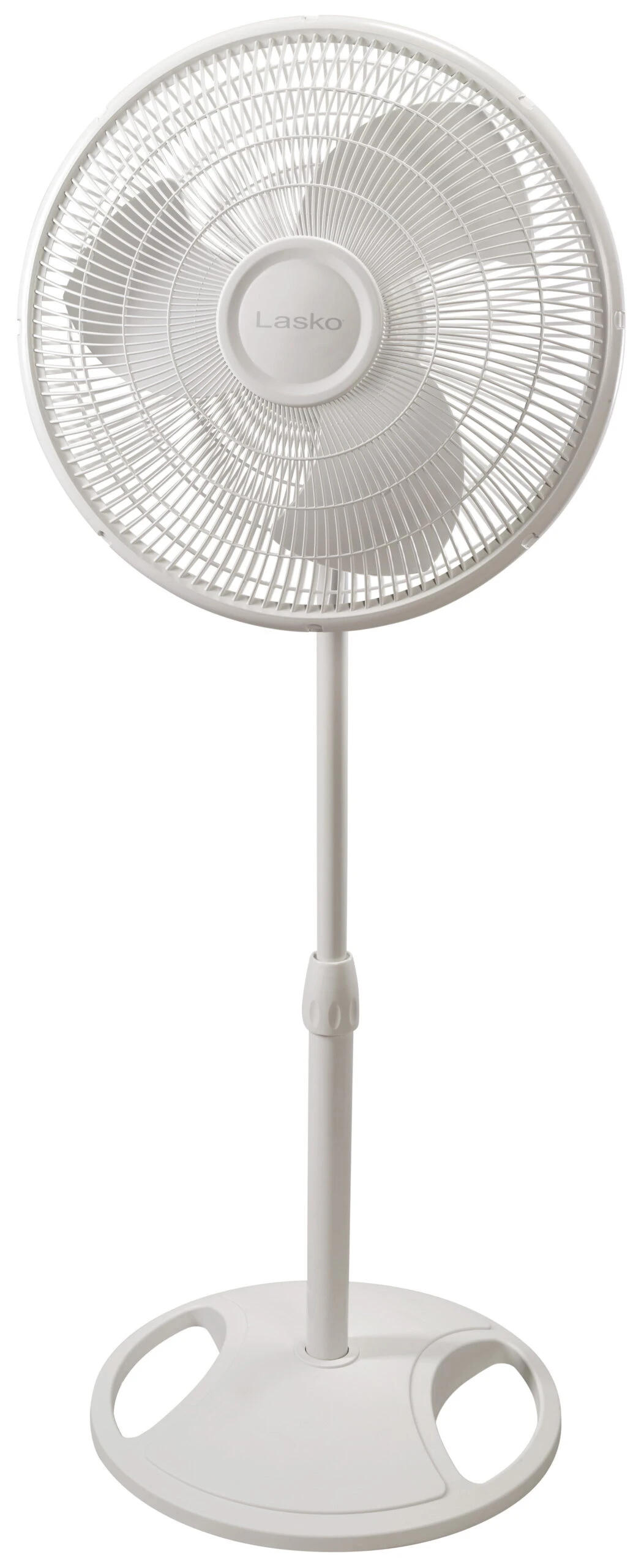 Enjoy a cool breeze in every room with the white Oscillating Multi-Purpose Stand Fan with 16-inch fan blade by Lasko. It is great for use in homes, offices, and more. The generous 16-inch diameter blade provides a powerful flow of cooling air that is adjustable to 3 quiet speeds. With its tilt-back fan head feature, you can set this pedestal fan to blow the air up towards the ceiling, creating comfortable air circulation throughout the room. Optional widespread oscillation and fully-adjustable height enable you to customize the cooling airflow in your space. Easy no-tools assembly.