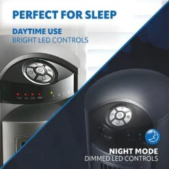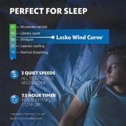 - TIMER + QUIET NIGHTTIME MODE: The 42″ Lasko Wind Curve Tower Fan has a 7.5-hour timer for easy on/off through the day or night. The quiet nighttime setting automatically dims the LED controls and decreases speed so you can sleep peacefully and stay cool
