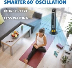 - OPTIMAL OSCILLATION: While other fans promote a full 90 degrees oscillation, we designed the 42″ Lasko Wind Curve Tower Fan with 60 degrees of oscillation to ensure you feel more of the breeze so you’re not waiting longer for the fan to come back around