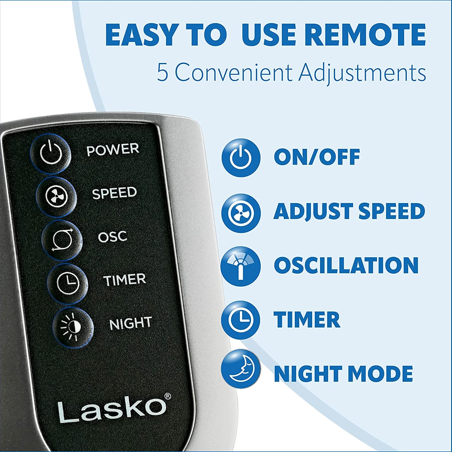 Lasko Portable Electric 42″ Oscillating Tower Fan with Nighttime Setting, Timer and Remote Control, Silver T42951