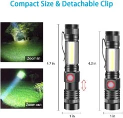 - Super Bright LED Flashlight: 1000 lumens maximum can provide up to 600 feet of intense light. Fully zoomable from wide to narrow beam.With 4 lighting modes: high/low / COB SOS / COB side light mode.