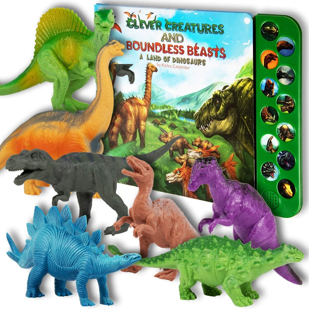 - WHAT’S INCLUDED: (12) Life-Like Dinosaur Toy Figures, (1) Dinosaur Sound Book