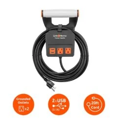 Add power to your small indoor spaces with the Link2Home Extension Cord Reel with two outlets and two USB ports. Perfect for electrical tools and small appliances, it features two USB ports for smart devices and two grounded outlets. The slim design makes it easy to store when not in use, plus it comes with a wall mount. It’s also easy to use with an ergonomic handle.