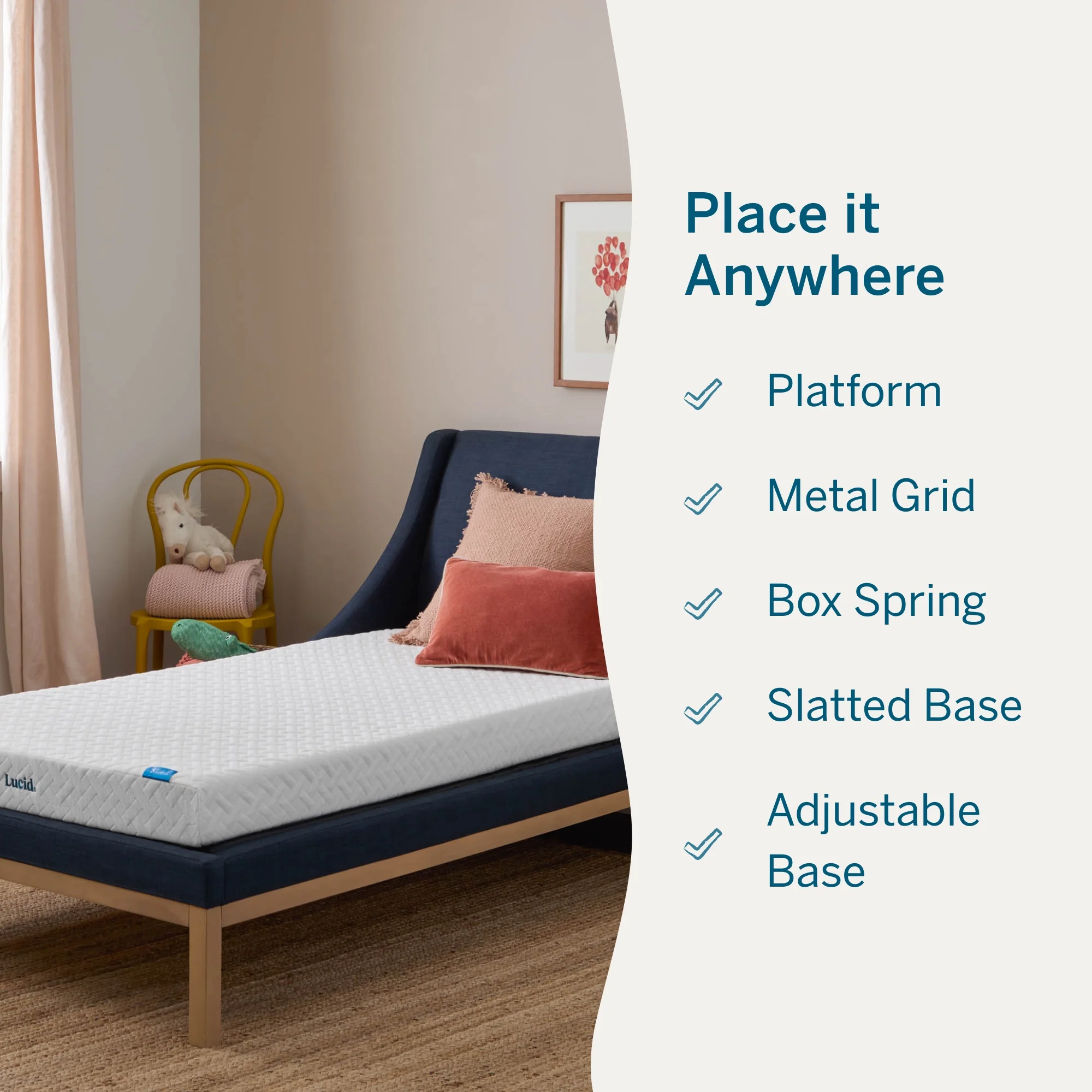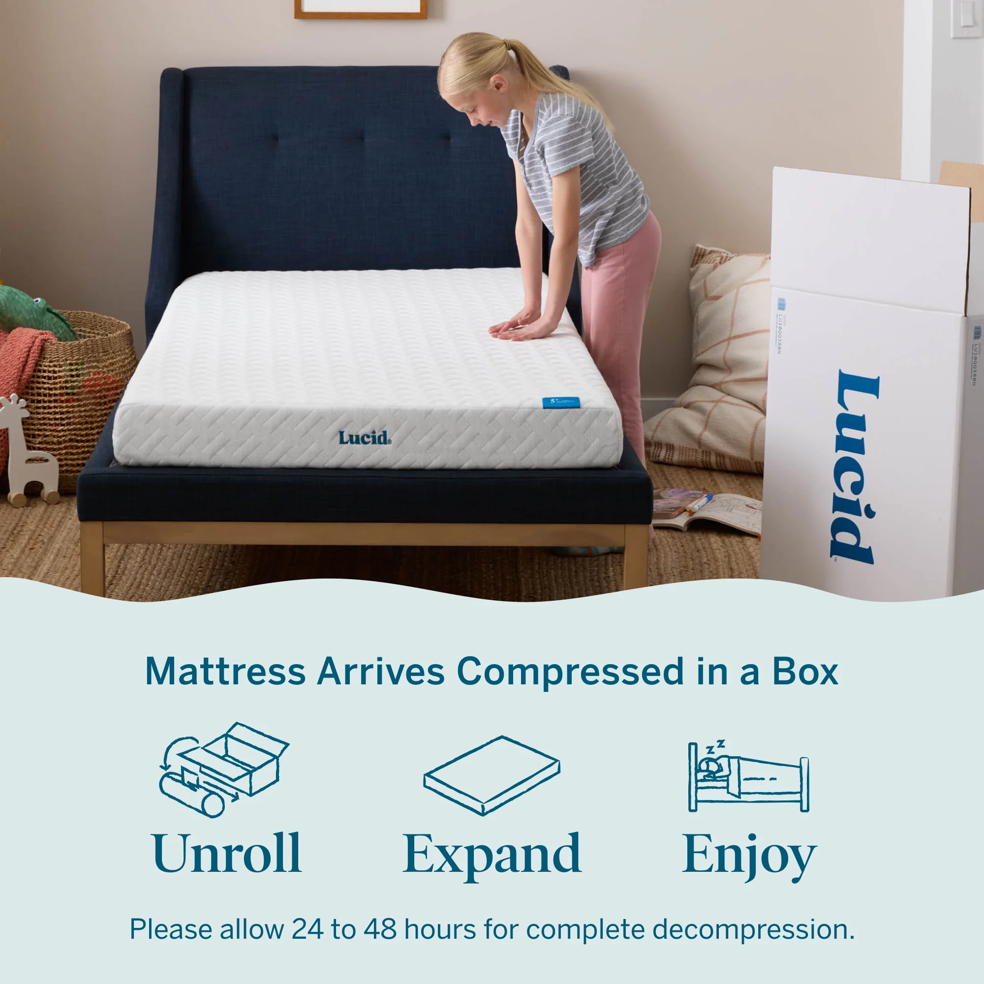 At Lucid, we make beds for the whole family. This is why the Lucid Bliss 5” Gel Memory Foam Mattress delivers comfort to every bedroom. Co-sleeping with a toddler is a pain in the neck. Give your toddler a taste of independence with a new transition mattress. And if your home isn’t ready for the next slumber party, try the 5 Inch Bliss in a trundle bed, day bed, or even bunk beds. Are you ready to hit the road? Travel in comfort with the perfect RV mattress that has a supportive base and a top layer of cooling memory foam. Plus, our memory foam is CertiPUR-US® certified and free of harmful chemicals to give you peace of mind. This mattress in a box comes compressed and rolled for easy shipping. Comfort awaits.