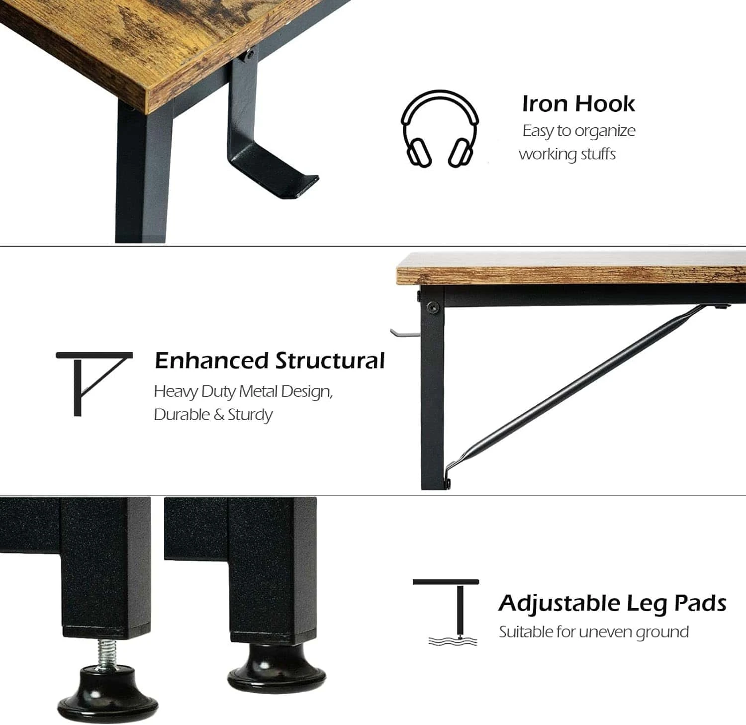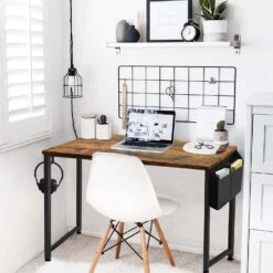- MODERN SIMPLE STYLE DESIGN: Desk is made of thick Particle board with scratch-resistant, anti-collision and waterproof, protect home office desk surface from daily wear and tear,Brown desktop match black metal frame ,with storage bag and Headphone hook (BOTH REMOVABLE ) .
