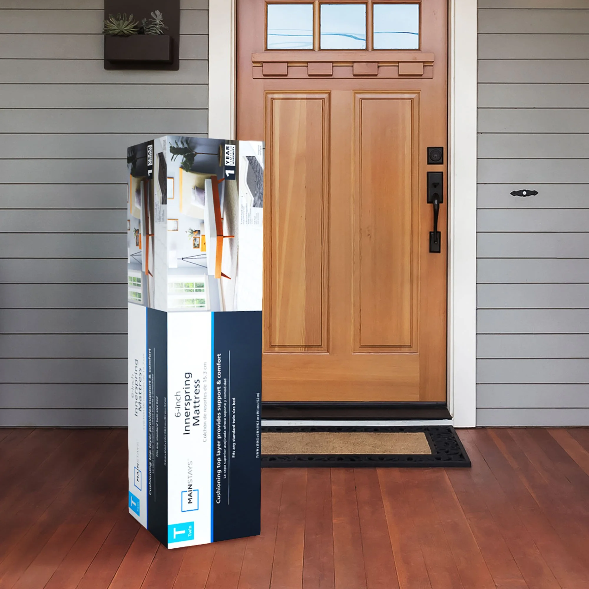 Ease your child’s transition to a big kid bed with the Mainstays 6″ Innerspring Coil Mattress. This mattress features tempered steel coils for consistent full-body support. The bright white exterior provides a clean and fresh presentation. This is the perfect bunk bed mattress or trundle bed mattress, available in Twin, Twin XL, and Full sizes. This bed-in-a-box ships compressed and rolled, arriving conveniently at your door. Allow 48 hours for expansion, then use your new Mainstays mattress on its own or with any bed frame and box spring.
