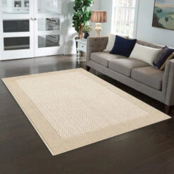 Mainstays Traditional Faux Sisal Olefin Beige Border Indoor Living Room Area Rug, 7’6″x10′, Beige