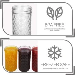 - A Few More Details:Jar capacity: 12 Ounce, Dimensions: 5.31″ Height x 2.56″ Diameter. Freezer and dishwasher safe. BPA free Plastisol lined silver lids. Now that’s a neat little jar! Also great for DIY candle making.