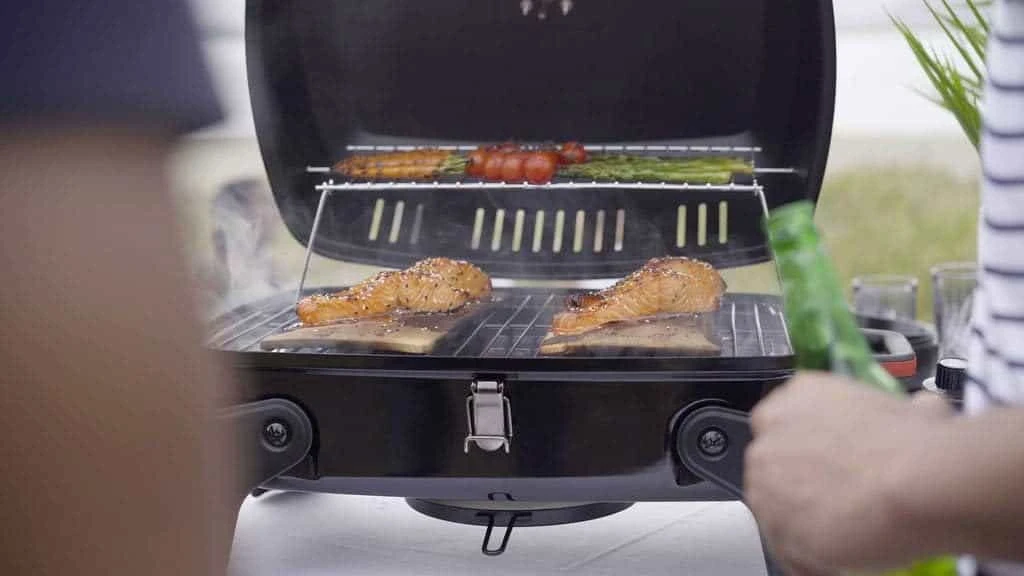 - Long-lasting steel wire cooking grid with 360 sq. in. cooking space