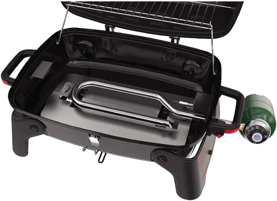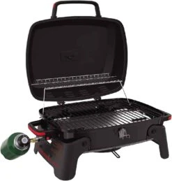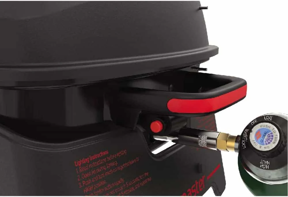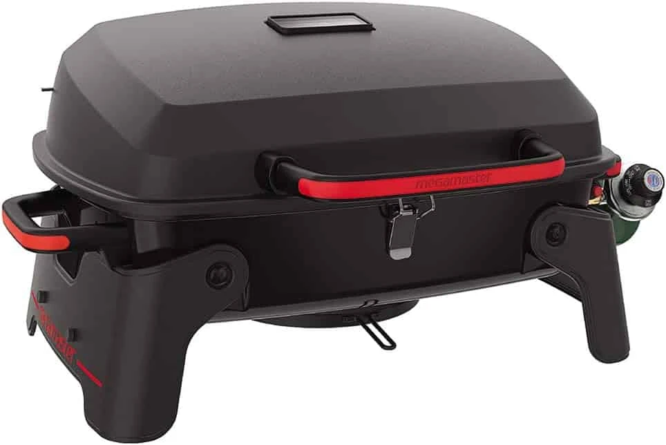 Megamaster 820-0065C 1 Burner Portable Gas Grill for Camping, Outdoor Cooking , Outdoor Kitchen, Patio, Garden, Barbecue with Two Foldable legs, Red + Black