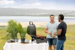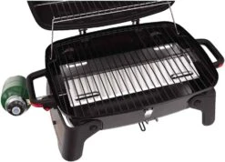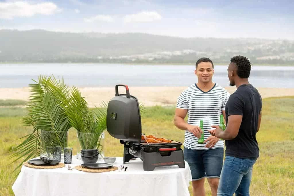 Meet the convenient, compact & powerful Megamaster one burner gas tabletop grill. It’s convenient, compact & powerful. With a roomy three hundred & sixty” Of total cooking space, you can grillup to 17 burgers at once. the main stainless steel burner fires up instantly at the press of button, which provides 11, 000 BTU of heat. the durable porcelain enameled firebox retains heat & the smooth surfaces make cleaning a cinch. the black powder-coated lid features a precise, built-in thermometer The sturdy lid easily locks & the legs conveniently fold away in transit to your next adventure. built for easy transport & neat & easy storage you can take your one-burner gas grill tailgating or wherever your grilling takes you. there’s a big world out there, Pack your Megamaster 1-burner propane gas tabletop grill & go explore