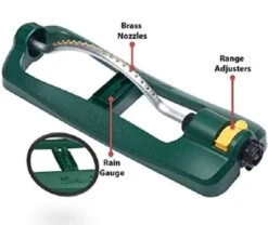 18 brass nozzles cover up to 3,600 sq. ft to water a large yard or the entire garden. The sliding range adjusters make it easy to position the water exactly where its needed without wasting any on the sidewalk or driveway. Clog resistant design works through sediment so water continues to run evenly. TurboTek motor provides a smooth operation and long life for years of reliable use. Built-in watering gauge so you can monitor how much water is used to help conserve water usage and prevent overwatering plants.