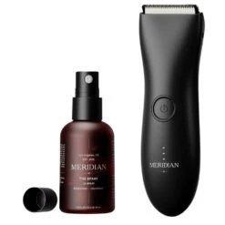 Meridian Complete Package features The Trimmer for grooming men & women body hair, plus The Spray, 2 pc kit