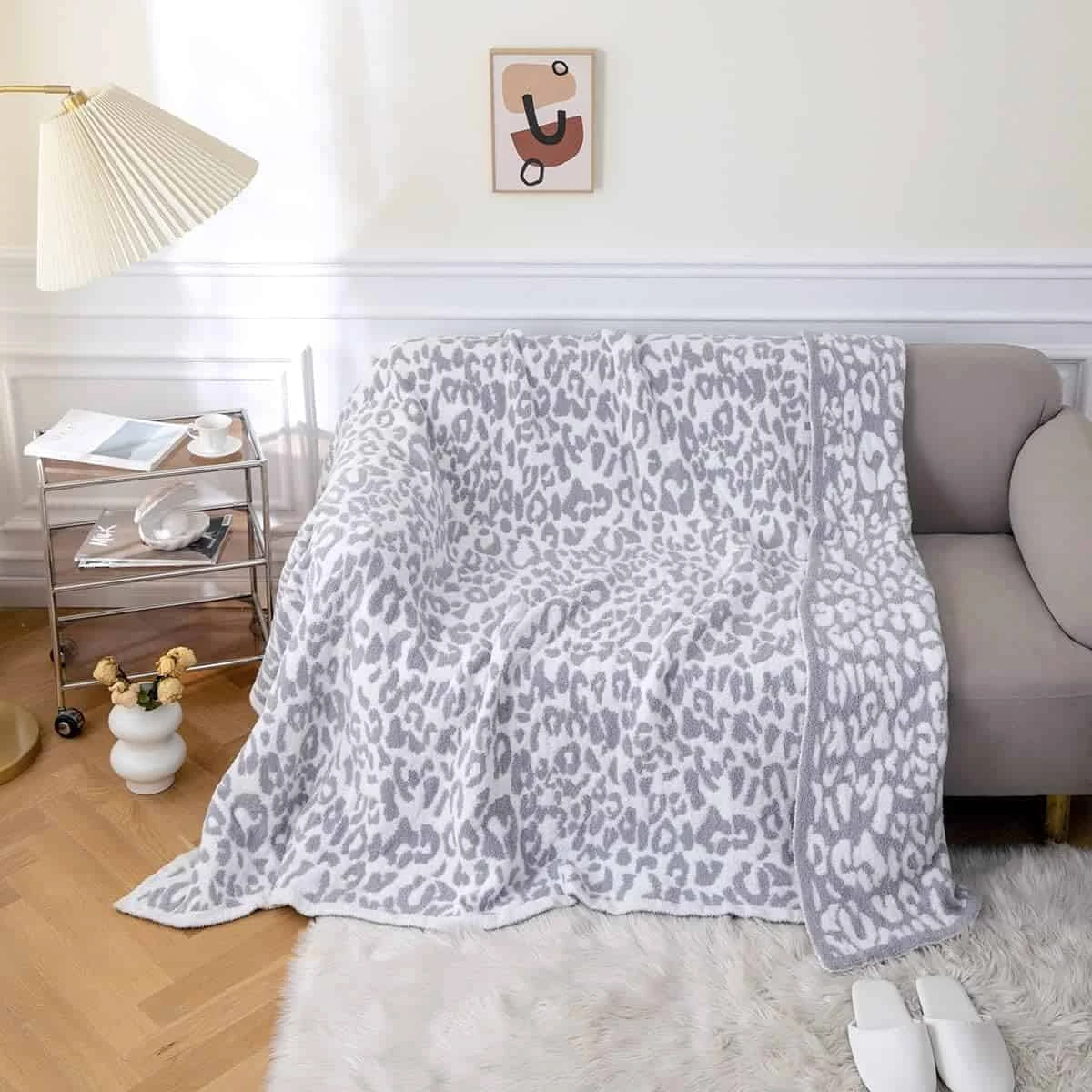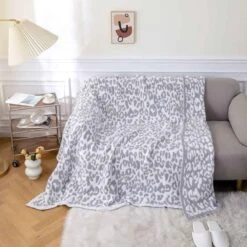 MH MYLUNE HOME Ultra Soft Micro Plush White Grey Leopard Blanket (51×63 inches) Warm Reversible Cheetah Blanket Leopard Pattern Throw for Couch Bed Sofa