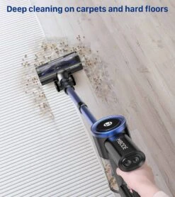 - Long-Lasting Battery Long Running Time: The ME02 stick vacuum cleaner is powered by a 2200mAh high-capacity and ultra-fast rechargeable battery that delivers an impressively long runtime, lasting up to 45 minutes in standard mode, allowing you to deep clean your entire house without interruption. The battery has no memory effect and runs 20% longer than other vacuum cleaners.
