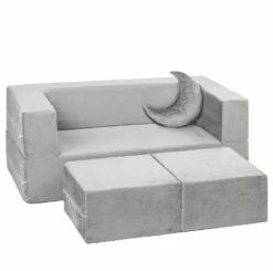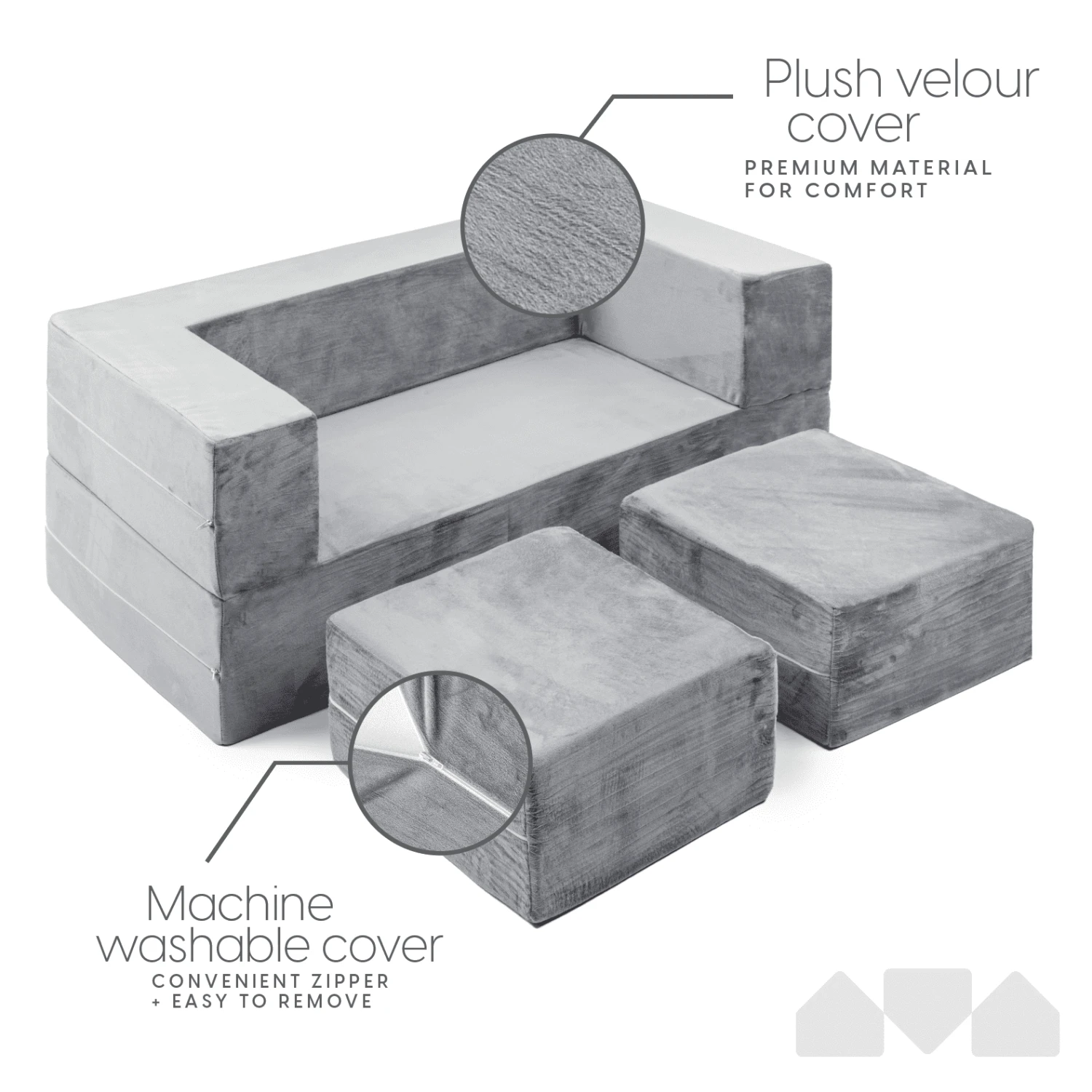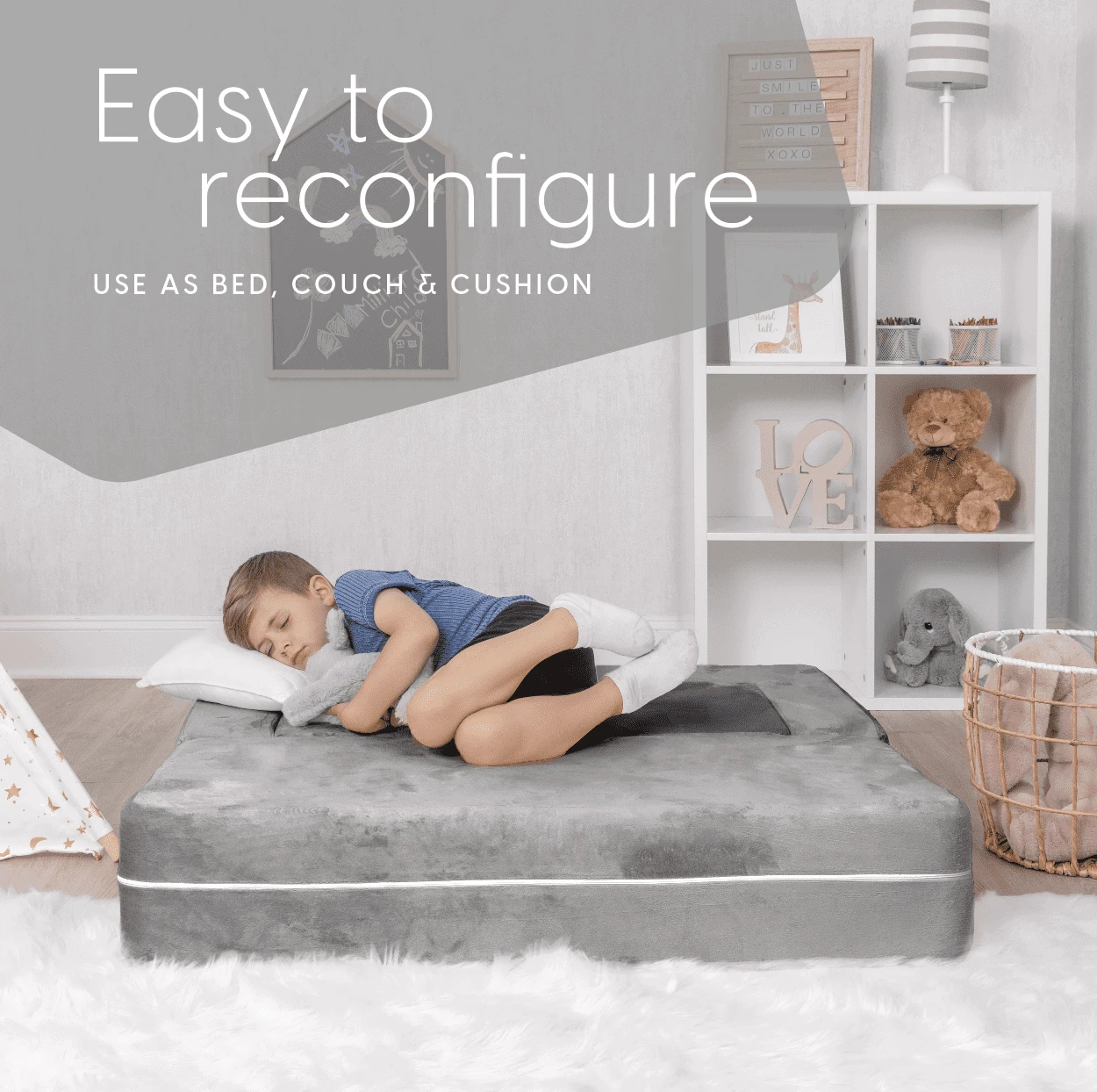 The Milliard Kids Sofa is comfortable and cool! The sturdy foam base will last for years of fun, and the machine washable soft velour cover is cozy and convenient. The smart modular design means even young kids can switch from sofa to bed mode in seconds, allowing for endless hours of fun. Perfect for a bedroom, playroom, nursery, or even a classroom, this sofa makes the perfect gift for kids up to approximately age 6.