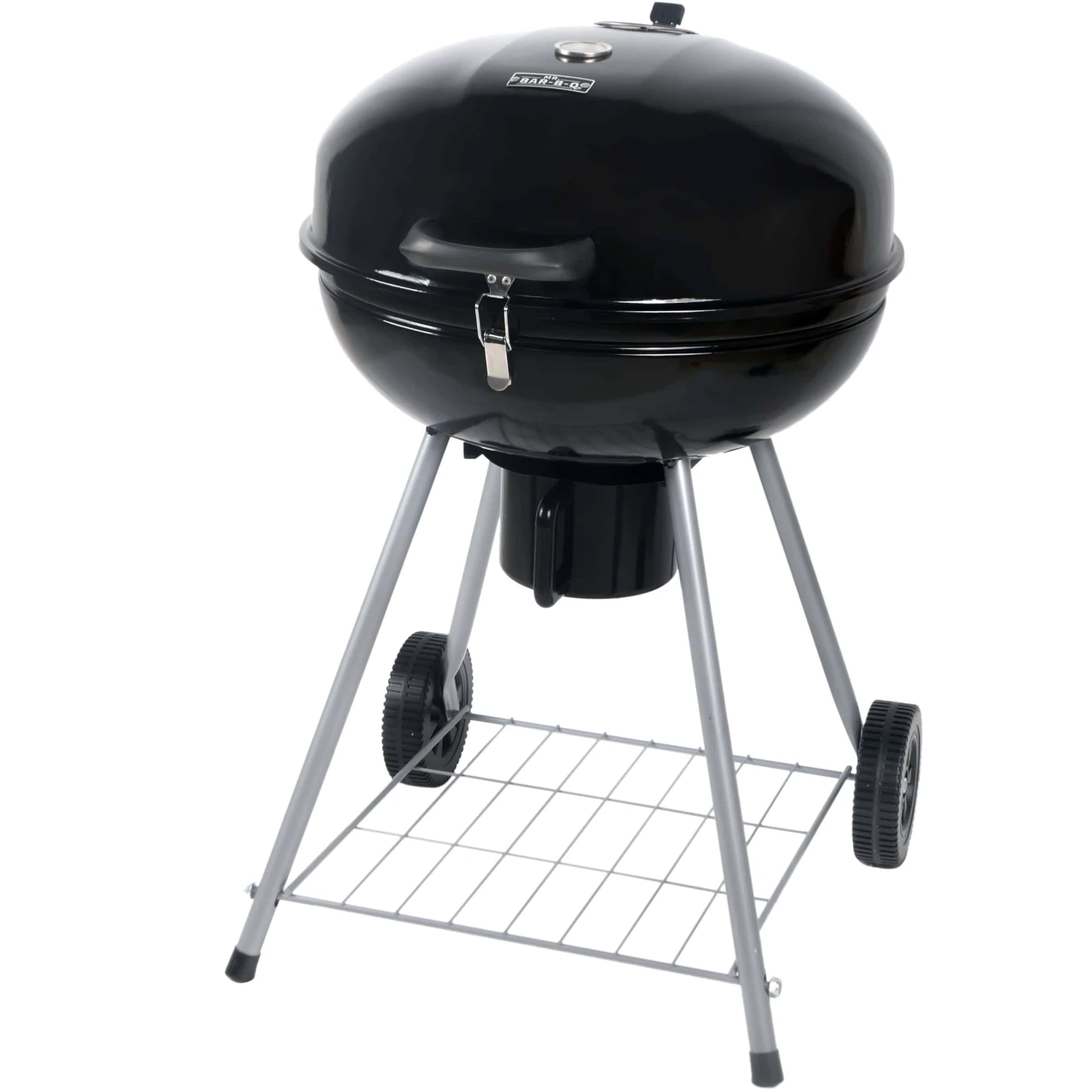 The Mr. Bar-B-Q 22-in charcoal grill has a total of 540-sq in cooking area, cook up to 27 burgers at a time. Built in temperature gauge and adjustable air vents for temperature control. Bottom storage shelf offer extra space. The wheels make transporting easy for your next event.
