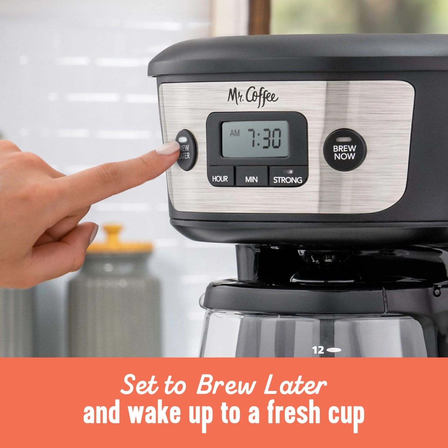 Mr. Coffee 12 Cup Programmable Coffee Maker with Strong Brew, Stainless