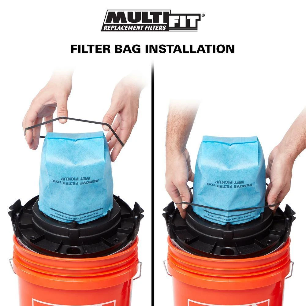 Have MULTI FIT Filter Bags on hand whenever the job calls for it with this 36-count value pack – buy more and save more. Always be ready for your next cleanup mess with these replacement bag filters designed to fit Husky, Bucket Head or Stinger wet/dry vacs. These high quality filter bags are easy to use and are made for standard dry pickup applications such as general dirt and dust. Remove shop vacuum replacement bags for wet pickup. Using these MULTI FIT filter bags increases the optimal vacuum performance and prolongs the life of the vac by protecting the motor from harmful dust and debris. Installation and removal is simple so the job can get done quickly and efficiently. To install, slide the MULTI FIT replacement bag filter over the shop vac filter cage and secure with the included mounting band – no tools required. General household pickups just got easier. Also, a range of value pack sizes (6-count, 12-count and 24-count) are available to accommodate a variety of project needs.