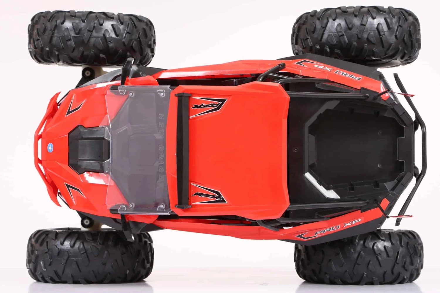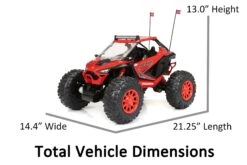 Blast down the beaten trails with the 1:5 scale radio control Polaris RZR XP PRO. This 4WD-RC is ready to take on any maze of dust and dirt with full function R/C capabilities at your fingertips. Game-style transmitter is easy for children and beginners to master. This huge (21.5″ long) R/C has loads of impressive features: bold Polaris styling; an open cockpit; and aggressive tire treads. The rechargeable 12.8V Lithium battery gets you to the finish line! (Includes wall charger for vehicle battery.) Race up to six vehicles to race interference free with 2.4GHz technology. All required batteries included – this R/C comes ready to run! Makes a perfect gift for trails racing enthusiasts and children 8 and up.