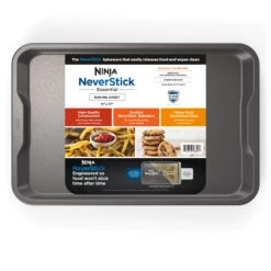 Introducing Ninja NeverStick Bakeware, the essential bakeware that easily releases food and wipes clean. Heavy-duty 0.6mm aluminized steel minimizes rusting, resists warping, and is oven safe up to 500⁰F. The NeverStick coating easily wipes clean, is dishwasher safe, and delivers perfect results every time.