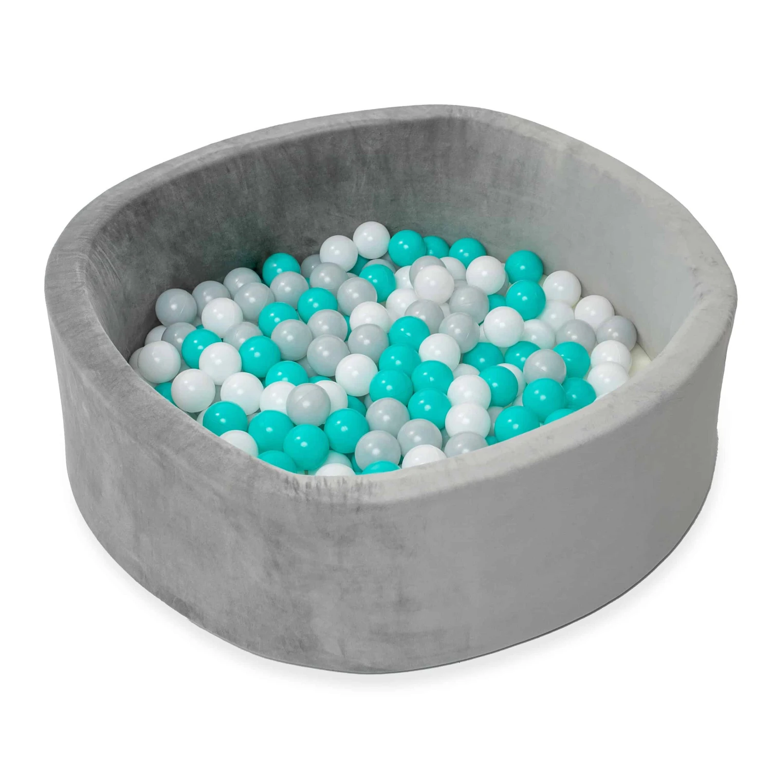 Nuby Grey Velvet Ball Pit with 200 Aqua, White, & Grey Balls