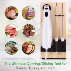 NutriChef Electric Carving Turkey Slicer Kitchen Knife | For Thanksgiving | Portable Electrical Food Cutter Knife Set with Carving Blades & Wood Carving Stand | Cuts Meat, Bread, Cheese & Fruit