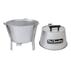 The Old Smokey Classic Charcoal Grill features 220 sq. in. of cooking space so you can cook for 4 – 6 people. The portable design lets you take the grill to your next tailgate party, campsite cookout or beachfront barbecue, and the rust-resistant aluminized steel construction offers light weight and durability.