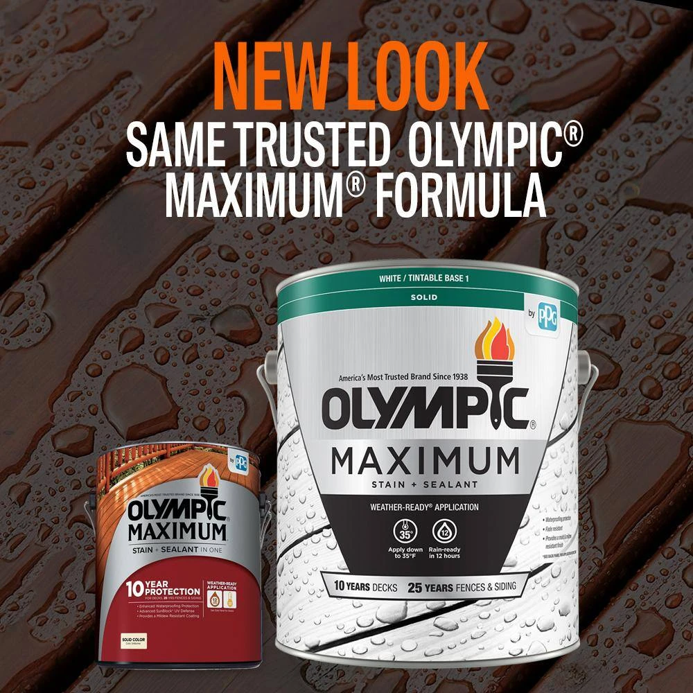 Stain your deck when you want, not when the weather dictates. This solid exterior wood stain adds rich opaque color while still allowing the texture of the wood to show. Olympic Maximum Exterior Wood Stain allows you to clean and stain your deck in the same day, even after rain. The enhanced waterproofing wood protection can be applied in hot and cool temperatures, so you can prep your wood surface in almost any season. Bring Maximum beauty and protection to your deck, fence, siding, railings, outdoor furniture and other wood surfaces. Apply to new, dry, pressure-treated wood, uncoated new or weathered wood, or wood previously stained or painted.