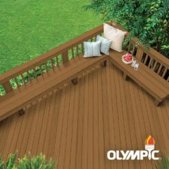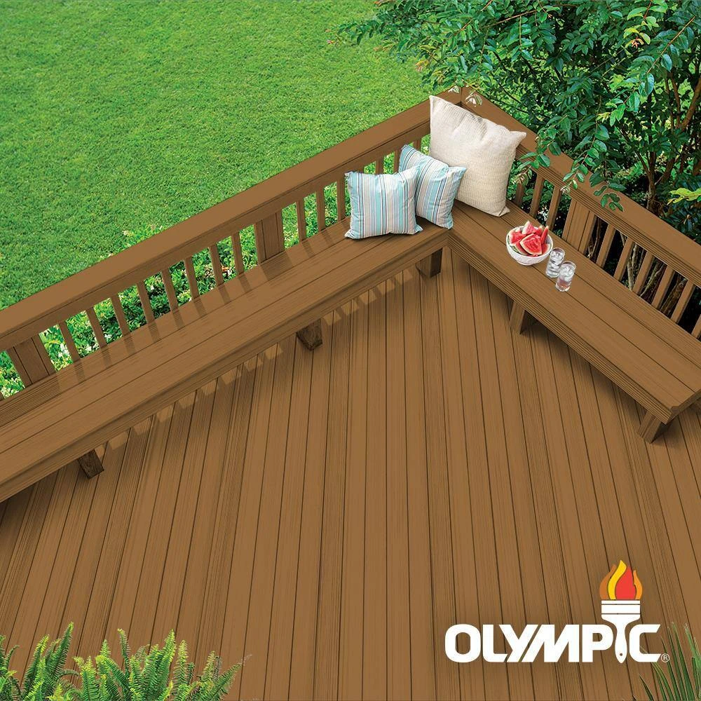 Olympic ELITE: A premium wood stain and sealant. This water based, semi-transparent wood stain adds color while still allowing the wood grain and texture to show. This super-premium exterior wood stain is formulated to protect and enhance the natural look of wood while providing protection and beauty through all seasons and provides a powerful mold, mildew and algae-resistant finish to your deck, fence. All backed by a lifetime guarantee. Recommended for use on any properly prepared exterior wood, including decks, fences, siding, railings, outdoor furniture and other wood surfaces.