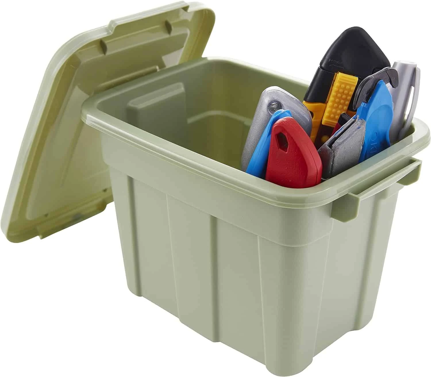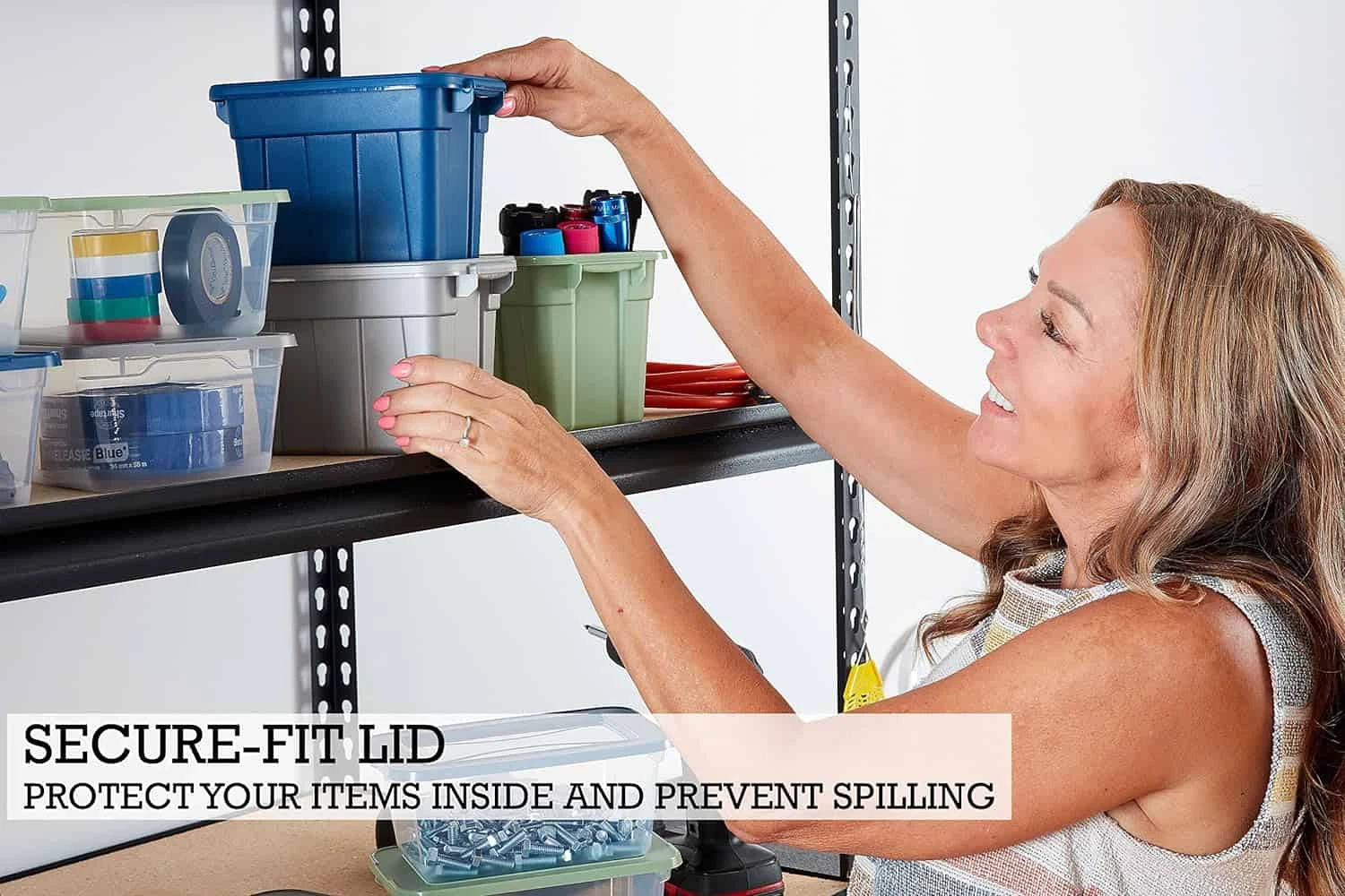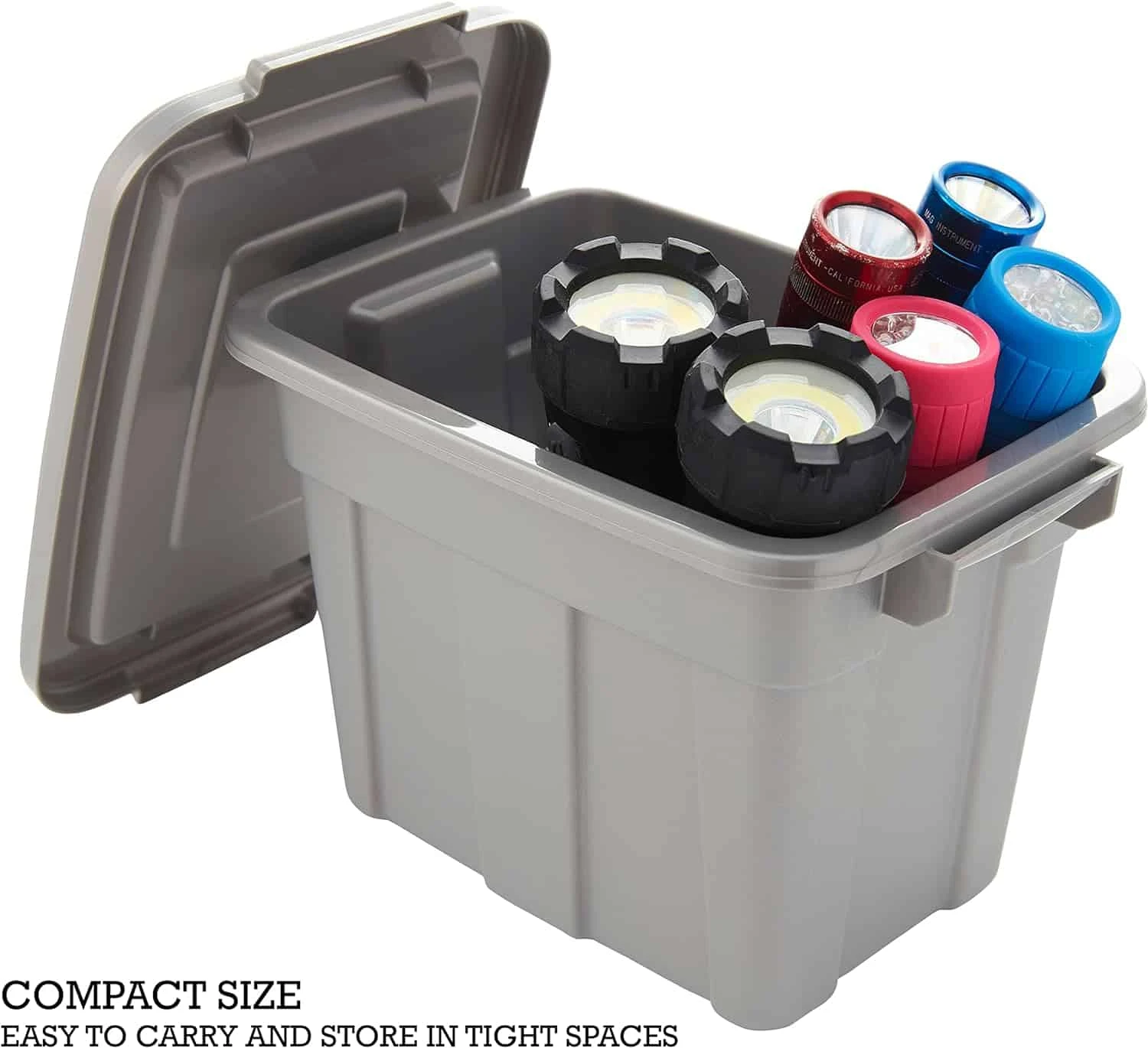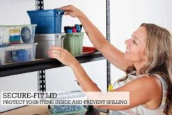 - SECURE-FIT LID – Organize Your Home’s Small Spaces Colorful Storage Tote is built with sturdy construction to ensure long-lasting use. Its secure-fit lid protects your items from spilling and makes them great plastic storage bins at home or on-the-go.