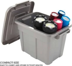 - DURABLE DESIGN – Built with sturdy plastic, these plastic containers with lids are built to last. Their sleek colors make them great for use as a crayon holder, lego organizers and storage, under bed storage bins, or hardware storage organizer.