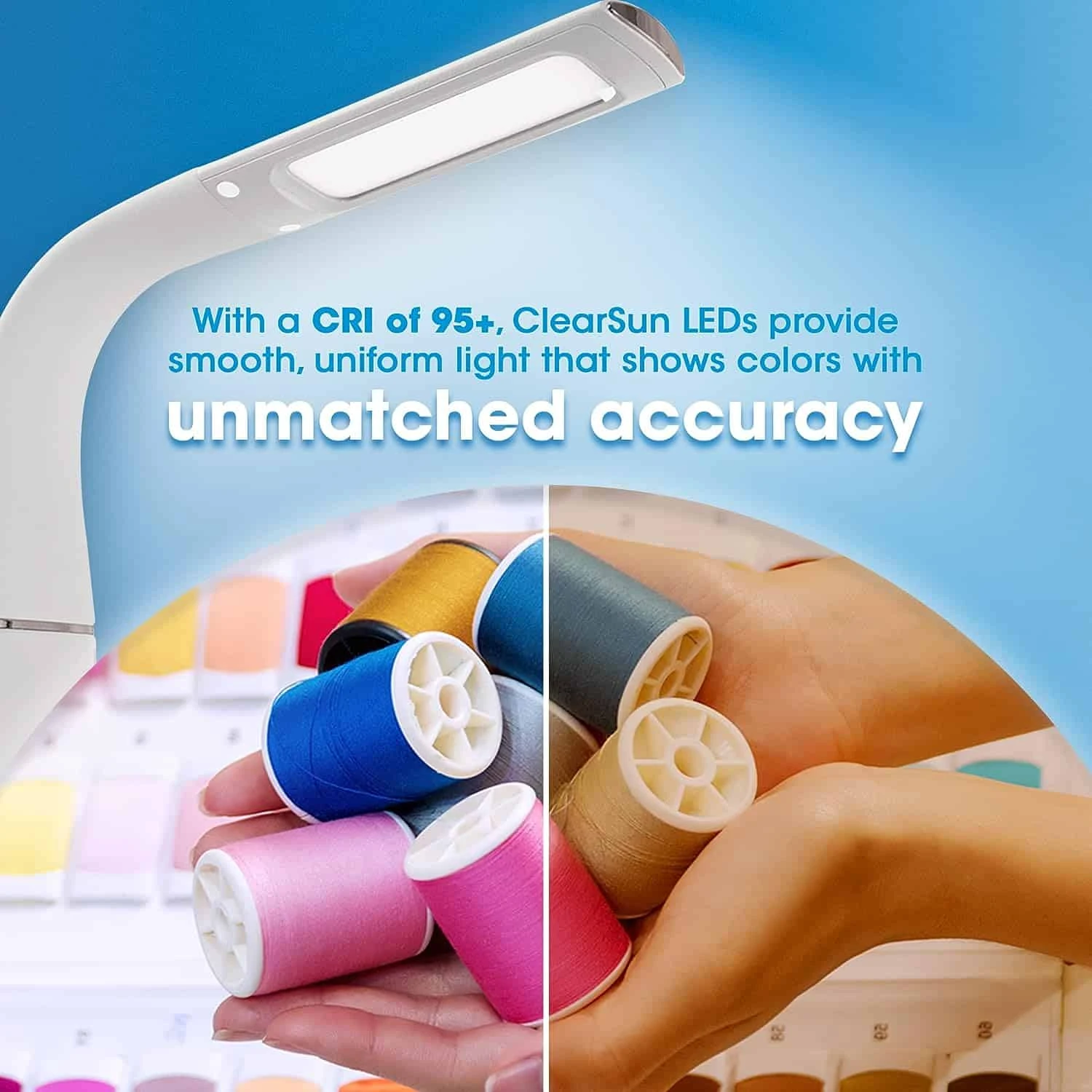 - Designed with Eye Health in Mind: Your eyes perform best in balanced, natural light, which is why OttLite’s exclusive ClearSun LED technology is designed to match the spectrum of the sun, reducing eyestrain up to 51%. ClearSun LEDs have a 95+ Color Rendering Index (CRI), a measurement that reveals how accurately a light shows color on a scale of 1-100. Other lamps average a CRI of 83.