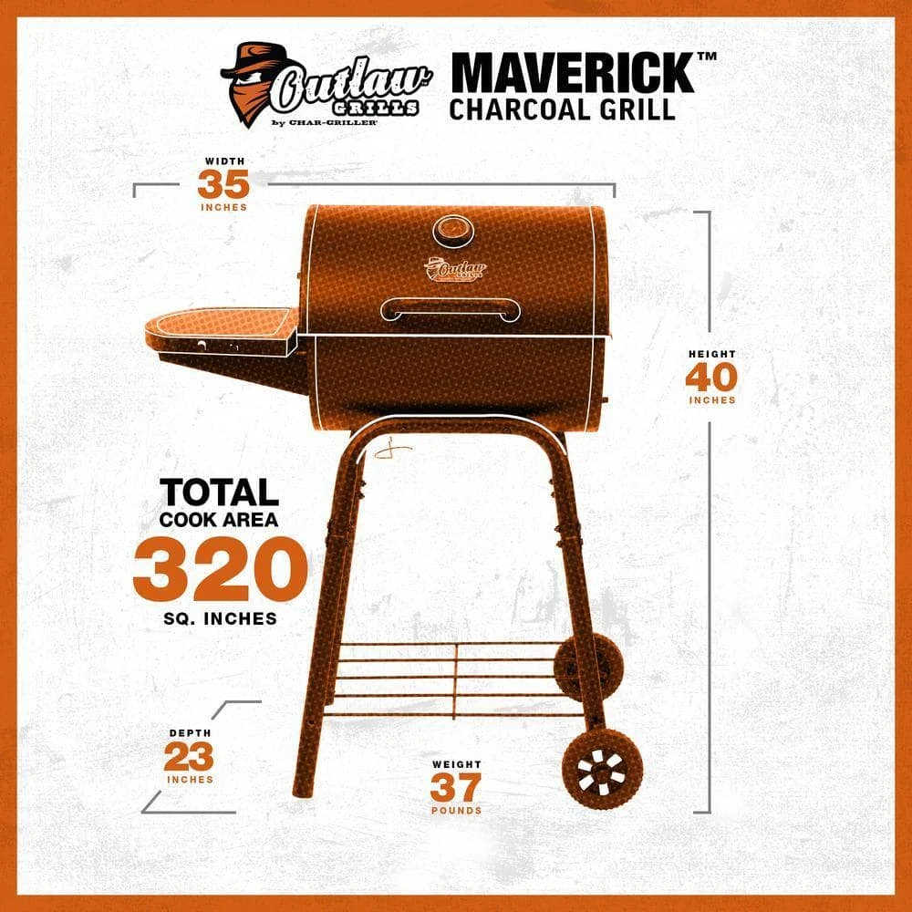 Outlaw Grills by Char-Griller 1016 Maverick Charcoal Grill in Black