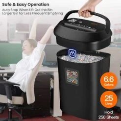 - Easy Emptying: This heavy duty paper shredder comes with 6.6 gallons bin and portable handle that offer less frequent and easy emptying. Transparent window helps to see when it is full. Also, THIS SHREDDER DO NOT NEED LUBRICANTS.