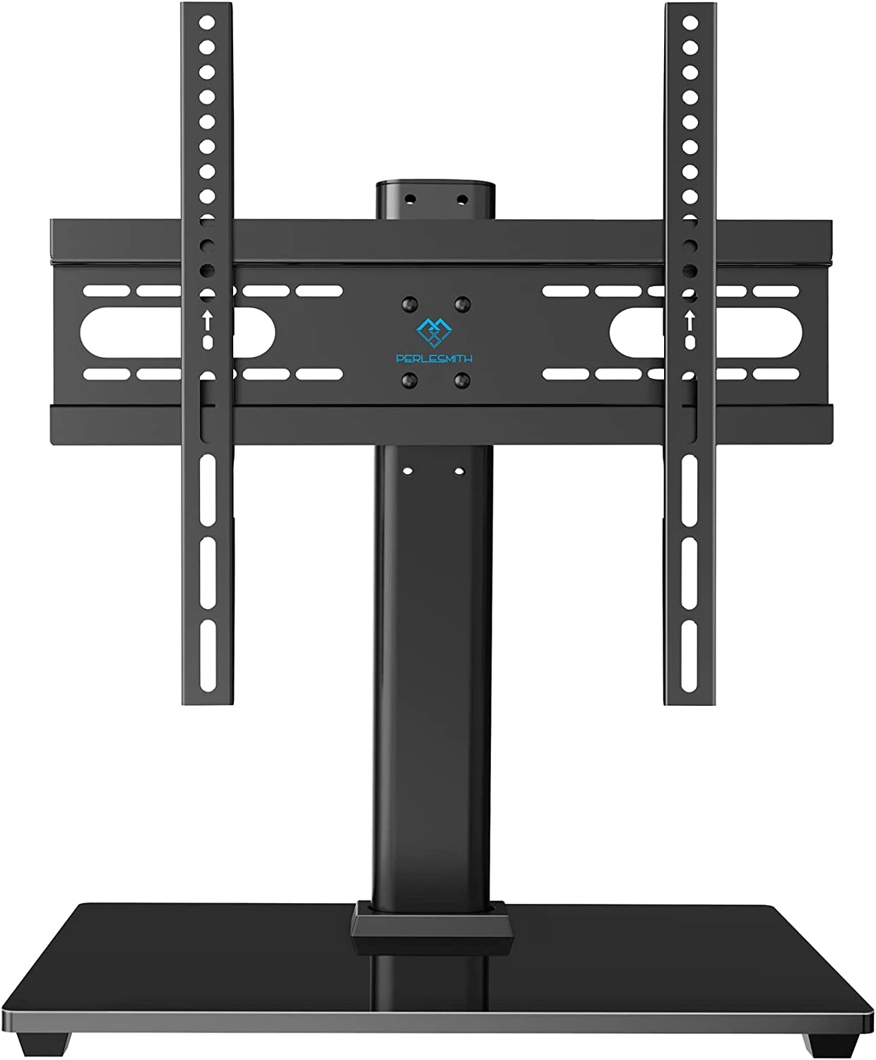 PERLESMITH Universal TV Stand – Table Top TV Stand for 37-55 inch LCD LED TVs – Height Adjustable TV Base Stand with Tempered Glass Base & Wire Management, VESA 400x400mm